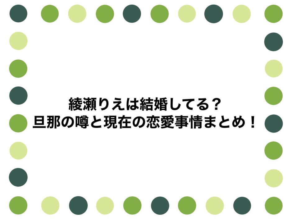 結論から言うと、綾瀬りえさんが結婚しているという公式な発表は、執筆時時点で確認できませんでした!