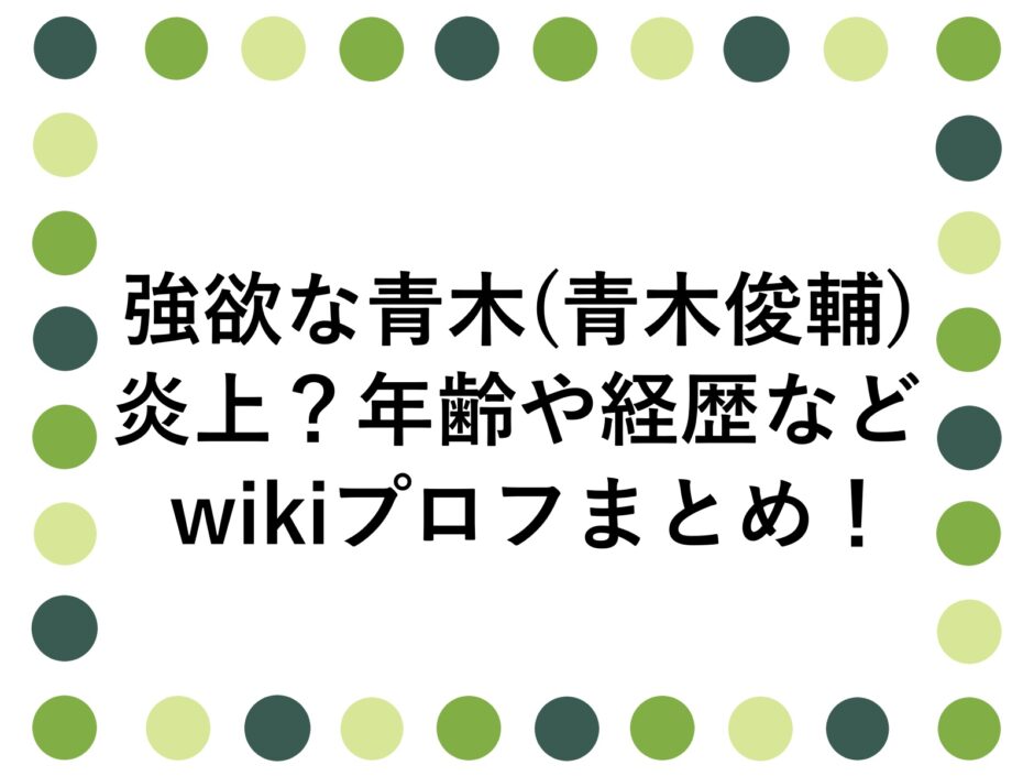 強欲な青木(青木俊輔)が炎上した理由は?