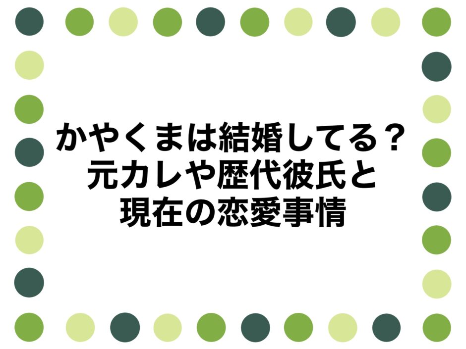 なんて疑問をお持ちのアナタのために、かやくまさんは結婚しているのか、元カレや歴代彼氏と現在の恋愛事情も調査、まとめました。