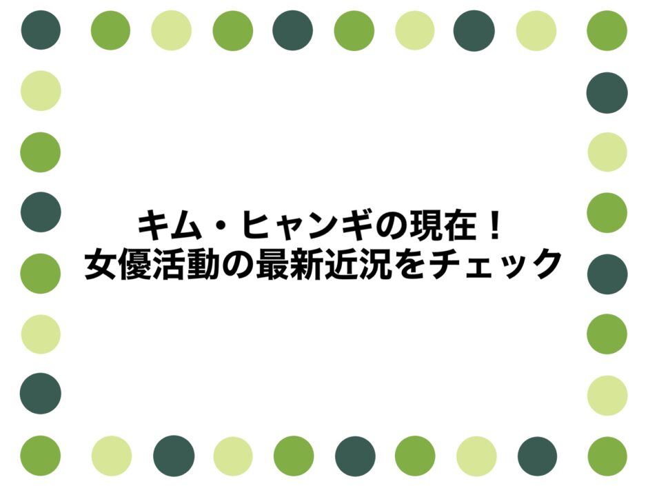 キム・ヒャンギの現在2026!女優活動の最新近況をチェック