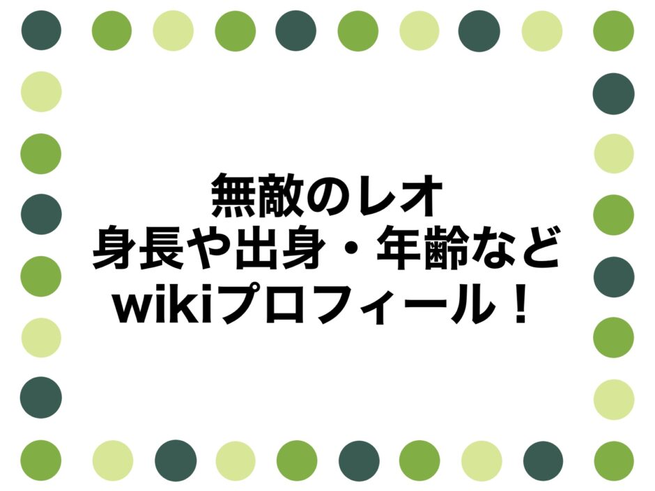 なんて疑問をお持ちのアナタのために、無敵のレオさんの身長や出身・年齢などwikiプロフィールを調査、まとめました。