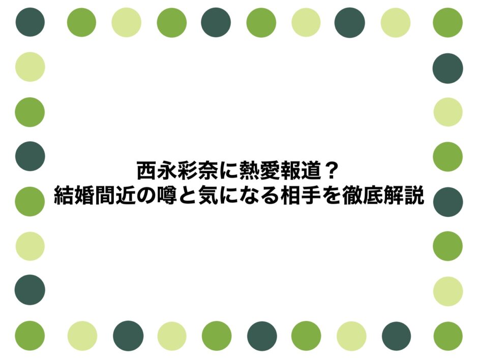なんて疑問をお持ちのアナタのために、西永彩奈さんの熱愛報道の真相、結婚間近の噂と気になる相手を徹底解説していきます。