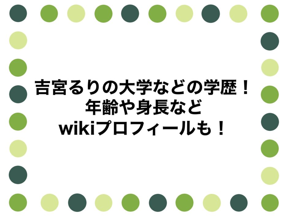 そんなアナタのために、吉宮るりさんの大学などの学歴、年齢や身長などwikiプロフィールも調査、まとめました。