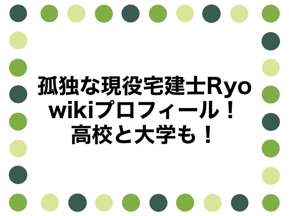 なんて疑問をお持ちのアナタのために、孤独な現役宅建士Ryoさんのwikiプロフィール、高校と大学も調査、まとめました。
