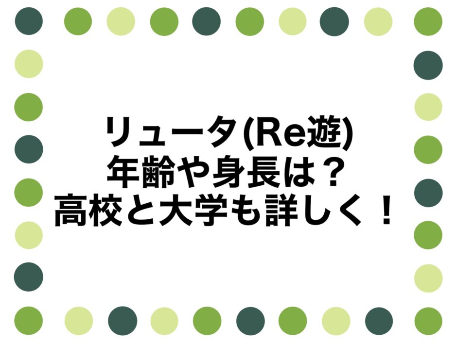 なんて疑問をお持ちのアナタのために、リュータ(Re遊)さんの年齢や身長、高校、大学を調査してまとめました。
