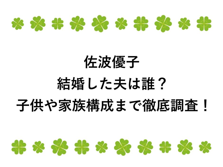 佐波優子が結婚した夫は誰?気になる正体に迫る
