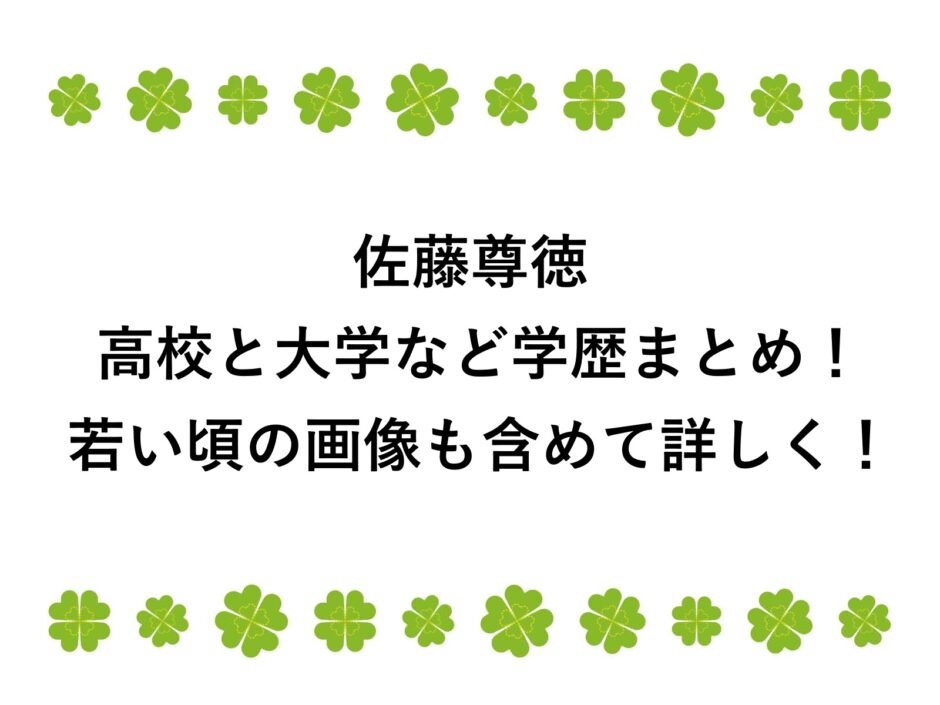 なんて気になるアナタのために、佐藤尊徳さんの高校と大学など学歴まとめ!若い頃の画像も含めて詳しく調査してまとめました!